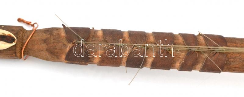 Leírás: Afrikai faragott fa és bőr húros hangszer, kagyló díszítéssel 60 cm