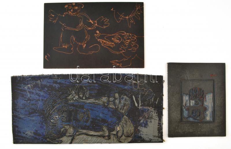 Leírás: Linó nyomólemez, 3 db, 13×10, 18×12 és 27×12 cm