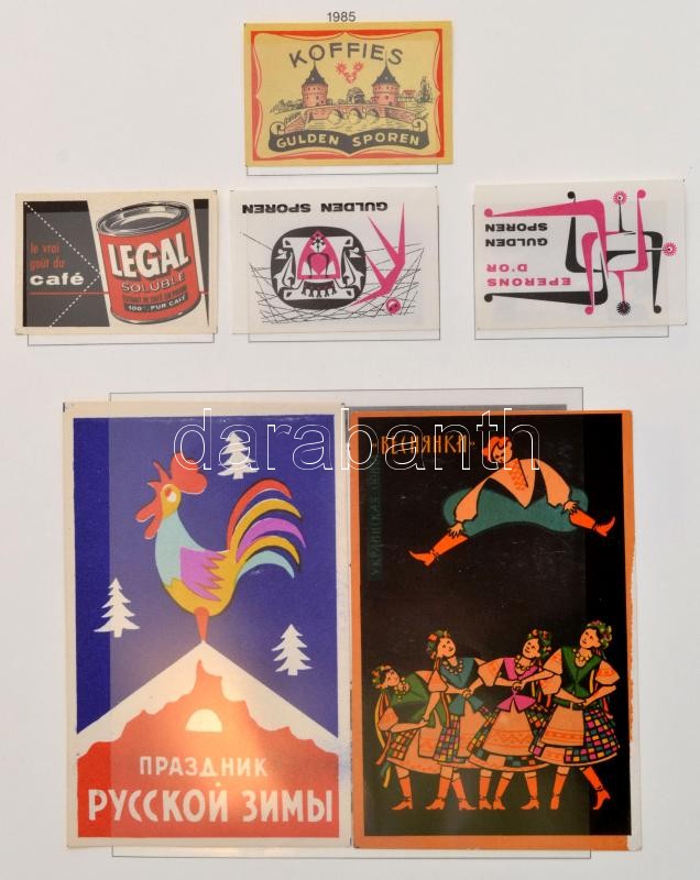 Leírás: Vegyes gyufacímke gyűjtemény, bélyegberakóba rendezve