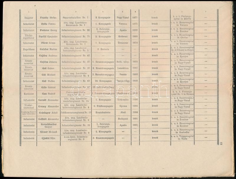 Leírás: 1914 Hírek a (világháborús) sebesültek és betegekről. Nr. 1. A monarchia összes nyelvén / News about the injured in WW. 1. first edition 45p.
