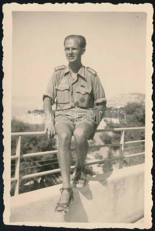 Leírás: 1944 Német katona fotója, vaskereszttel, 8x5 cm