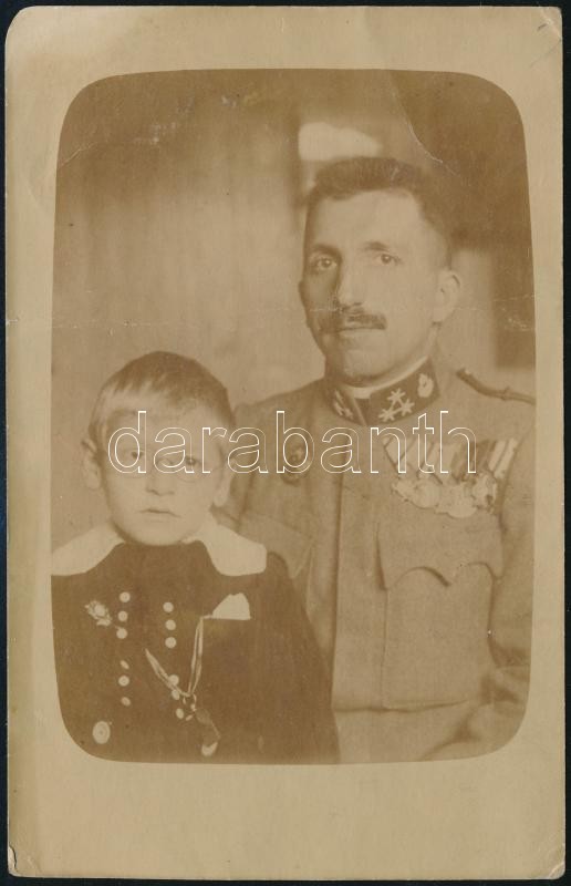 cca 1914-1918 Katonatiszt, kitüntetésekkel, az ölében a gyermekével, f... https://www.darabanth.com/hu/367-Gyorsarveres/367.0/Mutargy-papirregiseg-egyeb/Militaria~29/cca-1914-1918-Katonatiszt-kituntetesekkel-az-oleben-a-gyermekevel-fotolap-14x8-5-cm~II2124551