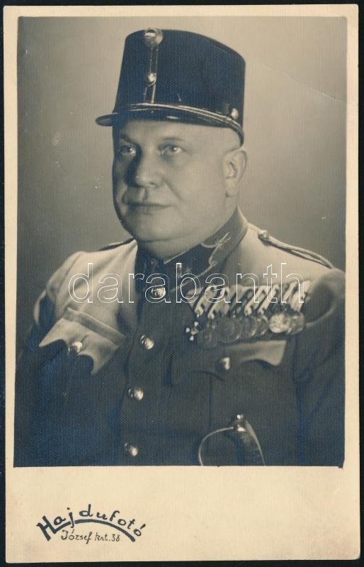 Leírás: cca 1920-1940 Százados portréfényképe, fotólap, Bp., Hajdufotó, 13x8 cm