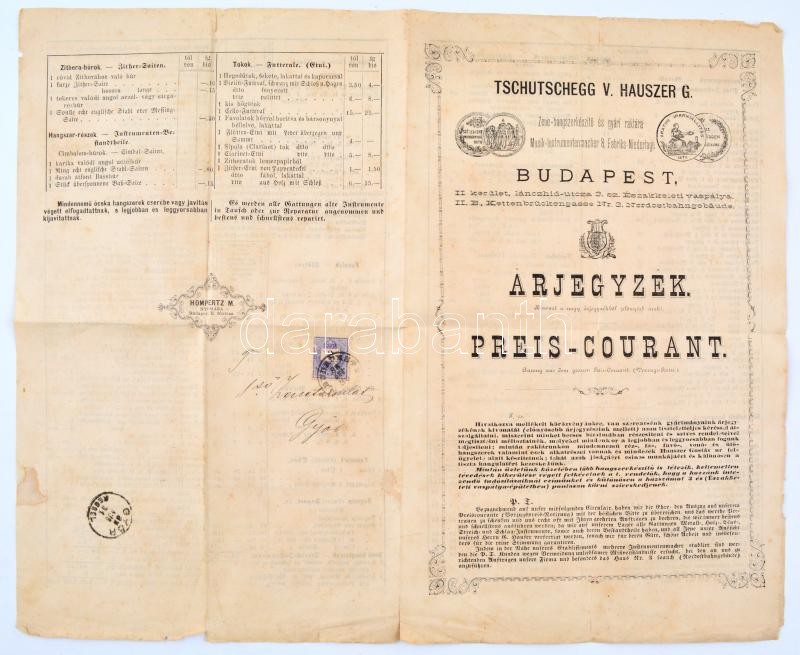Leírás: 1885 Tschutschegg V. Hauszer G. kétnyelvű hangszer árjegyzék, postázva
