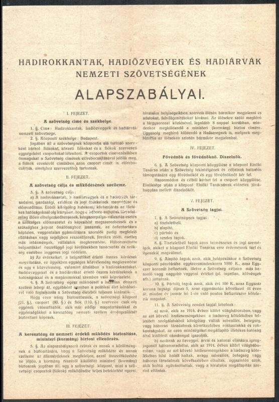 1916 Hadirokkantak, Hadiözvegyek és Hadiárvák Nemzeti Szövetségének al... https://www.darabanth.com/hu/367-Gyorsarveres/367.0/Mutargy-papirregiseg-egyeb/Nyomtatvanyok~31/1916-Hadirokkantak-Hadiozvegyek-es-Hadiarvak-Nemzeti-Szovetsegenek-alapszabalyai-8p~II2129420