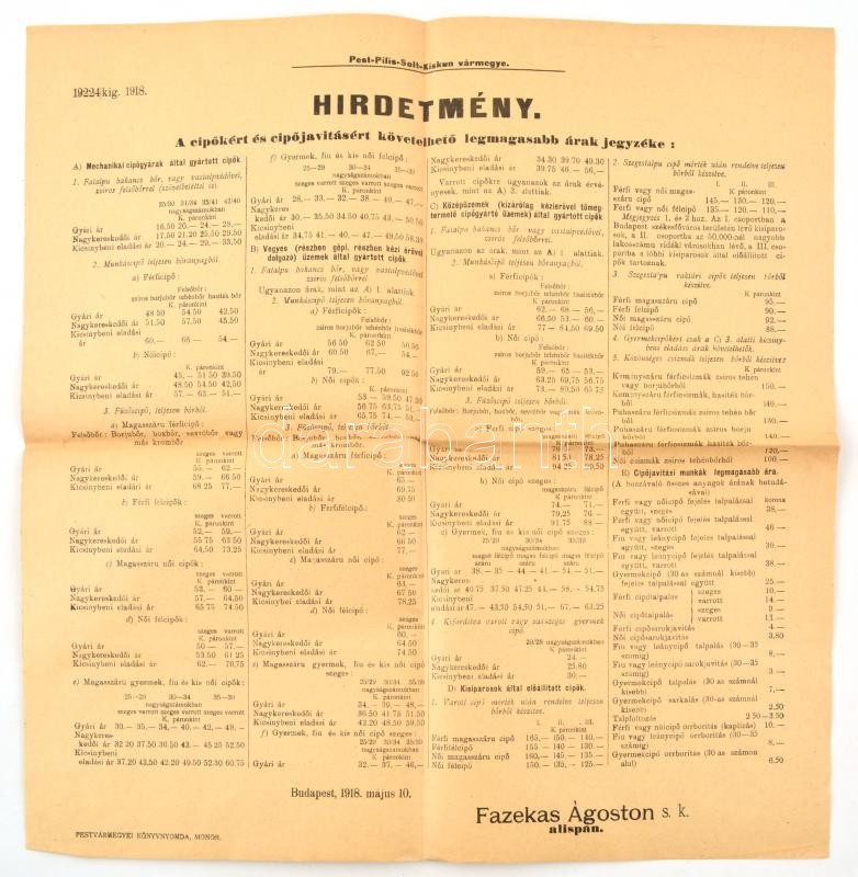 Leírás: 1918 Ármaximáló rendelet a cipőkre és cipőjavításra vonatkozóan 43x43 cm