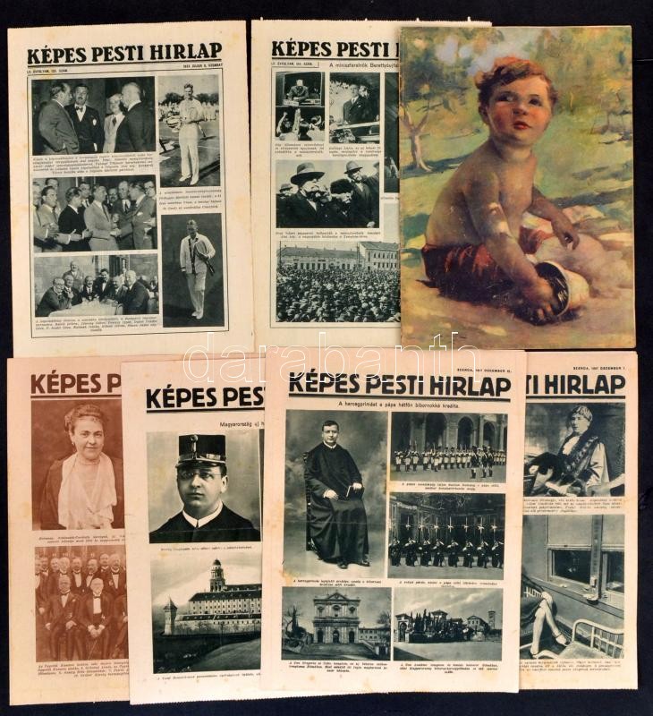 1927-1933 Képes Pesti Hírlap 6 száma. Fekete-fehér korabeli fotókkal. Rajta a kor neves személyességeivel, Serédi Jusztiniánnal, Gömbös Gyula miniszterelnökkel. +Pesti Hírlap Vasárnapja 1931. július 5. száma.