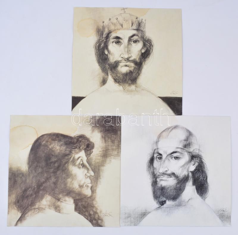 Leírás: 3 db Szász Endre nyomat, papír, foltos 30x30 cm