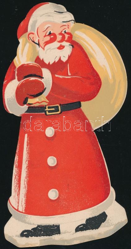 cca 1940-1950 Télapó papír dísz, 21x11 cm https://www.darabanth.com/hu/367-Gyorsarveres/367.0/Mutargy-papirregiseg-egyeb/Nyomtatvanyok~31/cca-1940-1950-Telapo-papir-disz-21x11-cm~II2127612