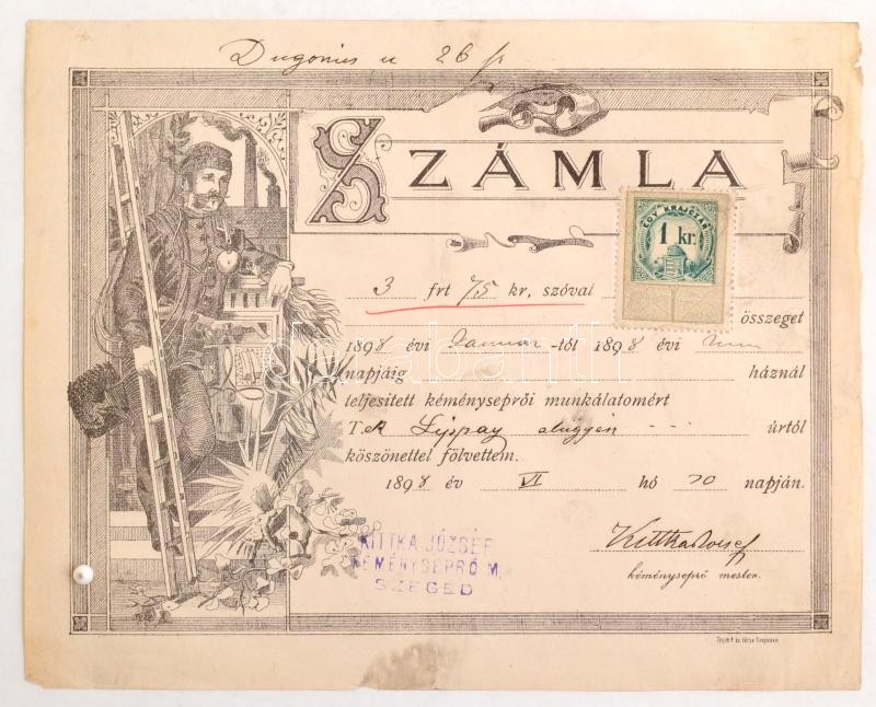 Leírás: 1898 Kéményseprő számla