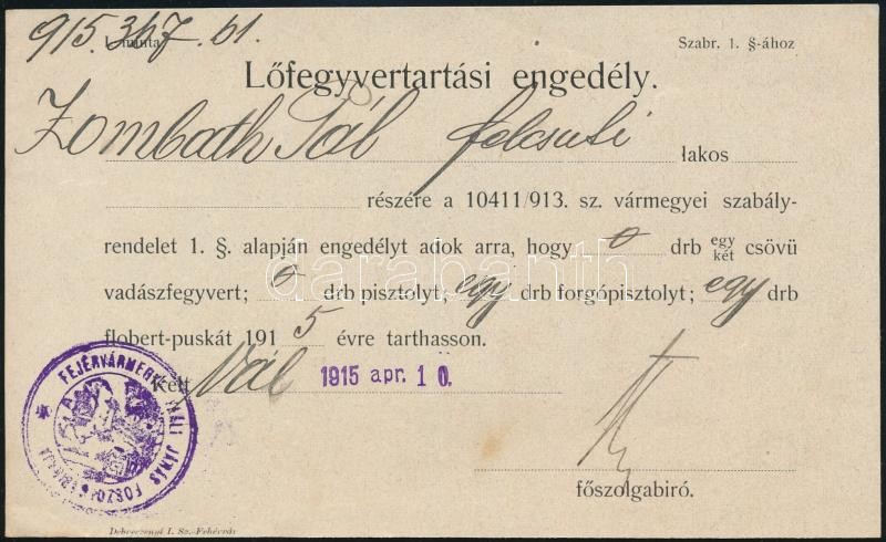 Leírás: 1915 Felcsút, fegyvertartási engedély