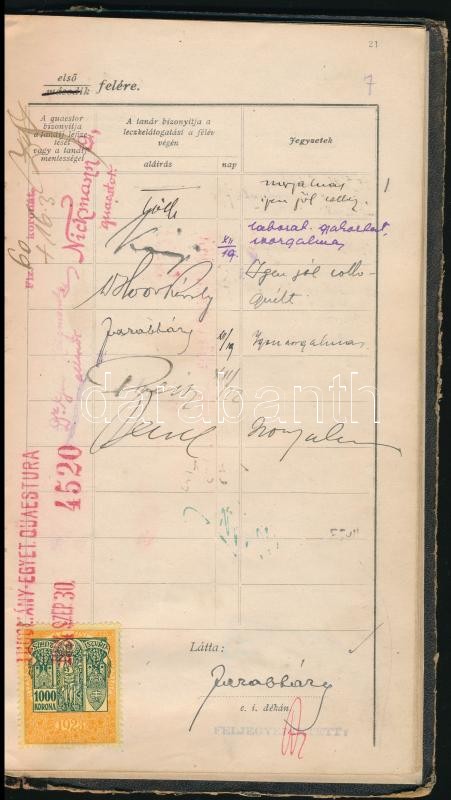 1921 Bp., A Budapesti Magyar Tudományegyetem leckekönyve, benne Lenhos... https://www.darabanth.com/hu/367-Gyorsarveres/367.0/Mutargy-papirregiseg-egyeb/Okmanyok~18/1921-Bp-A-Budapesti-Magyar-Tudomanyegyetem-leckekonyve-benne-Lenhossek-Bokay-Koranyi-stb~II2125508