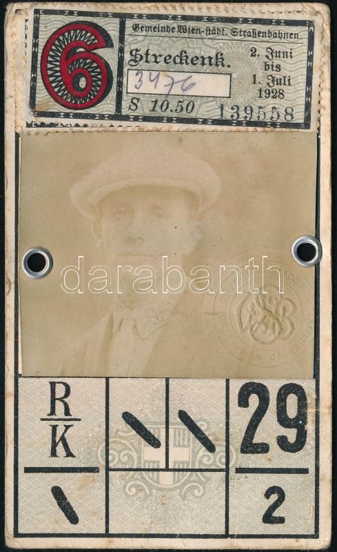 1928 Gemeinde Wien-Städt. Straßenbahnen fényképes bérletjegy https://www.darabanth.com/hu/367-Gyorsarveres/367.0/Mutargy-papirregiseg-egyeb/Okmanyok~18/1928-Gemeinde-Wien-Stadt-StraC39Fenbahnen-fenykepes-berletjegy~II2128182