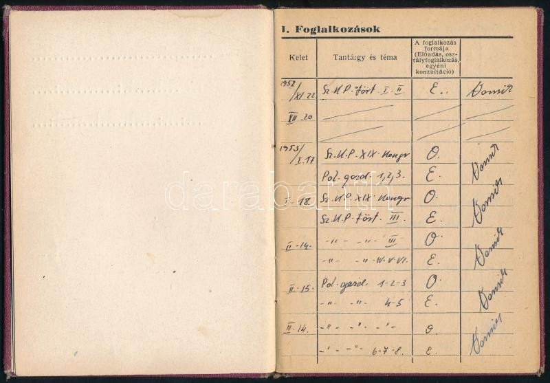 Leírás: 1953 MDP Pártfőiskola Levelező Tanfolyama által kiállított tanulmányi könyv