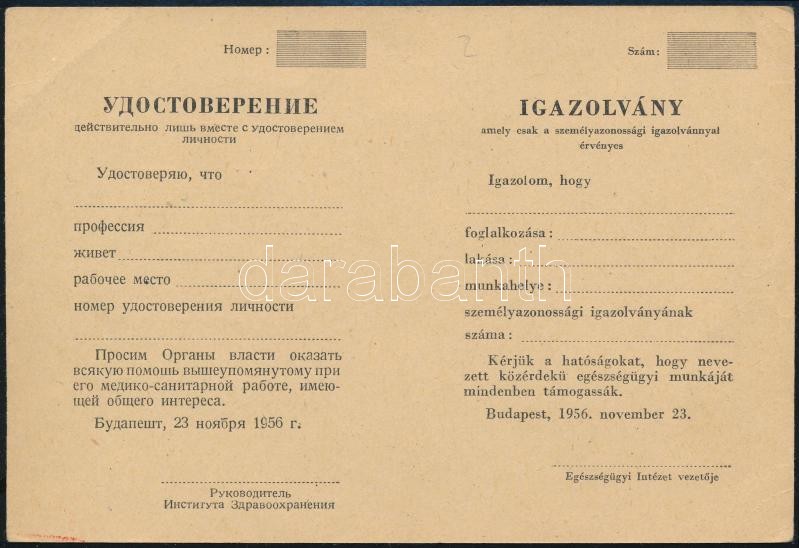 1956 Vöröskeresztes igazolvány, kitöltetlen, 1956. nov. 23. nyomtatott... https://www.darabanth.com/hu/367-Gyorsarveres/367.0/Mutargy-papirregiseg-egyeb/Okmanyok~18/1956-Voroskeresztes-igazolvany-kitoltetlen-1956-nov-23-nyomtatott-datummal~II2127615