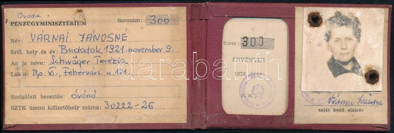 Leírás: 1976 A Pénzügyminisztérium fényképes szolgálati igazolványa óvónő részére