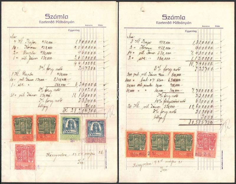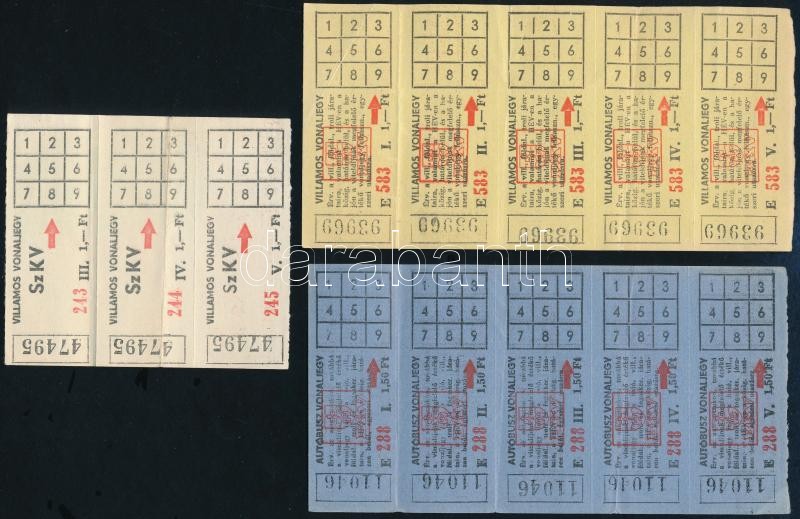 cca. 1924-70 2 db Dreher Antal Kőbányai Serfőzde számla 1924-ből, 50, 300, 500 és 1000 korona okmánybélyeggel, kiállítva Adler és Vadász uraknak Kispest (Adler és Vadász borkereskedők Kispesten, az Üllői-út 49. sz, alatt működtek) + cca 1960-70 használatlan villamos és buszjegyek (SzKV Szeged 3 db sorszámkövető, 5 db BKV villamos vonaljegy és 5 db autóbusz vonaljegy)