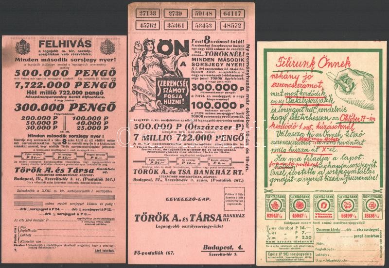 cca 1931-1940 össz. 3 db osztálysorjegy reklám, 1 db kis szakadásokkal... https://www.darabanth.com/hu/367-Gyorsarveres/367.0/Mutargy-papirregiseg-egyeb/Reklam~23/cca-1931-1940-ossz-3-db-osztalysorjegy-reklam-1-db-kis-szakadasokkal-merete-ca-24-5x12cm-2~II2125731