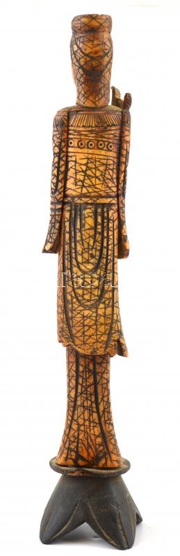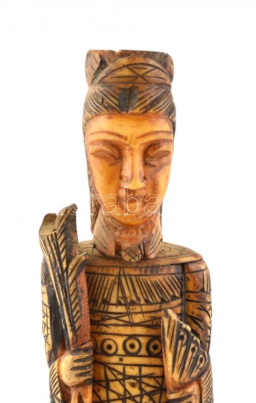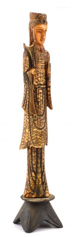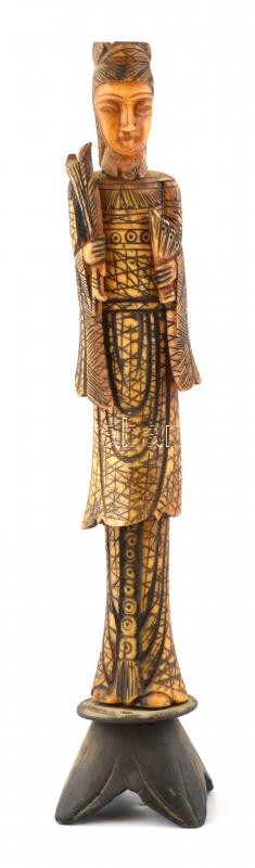 Leírás: Keleti faragott csont figura. Festett, fa talapzaton. 34 cm