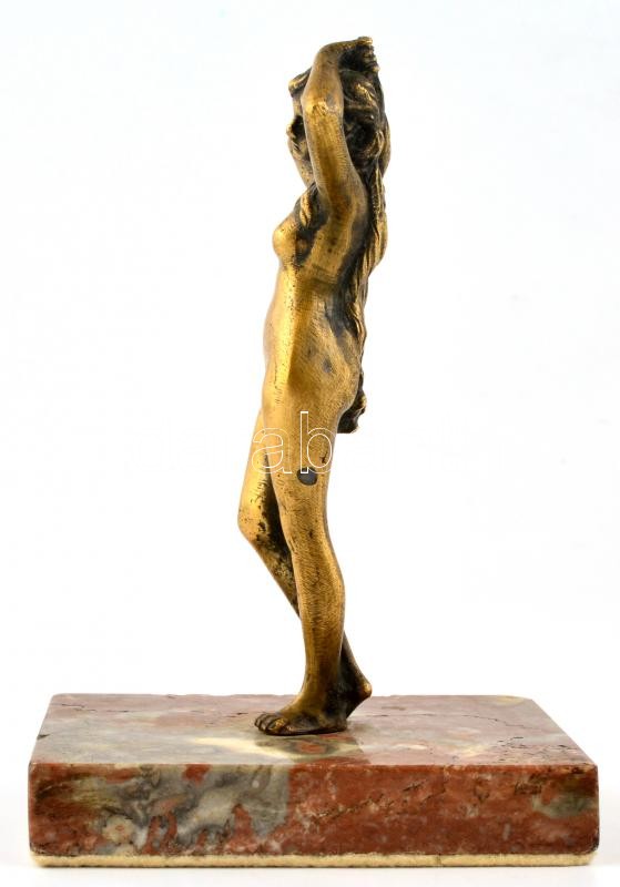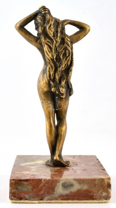 Leírás: Női akt. Bronz figura márvány talapzaton. 18 cm