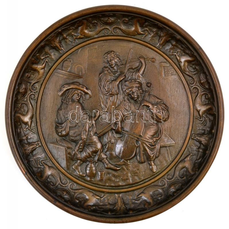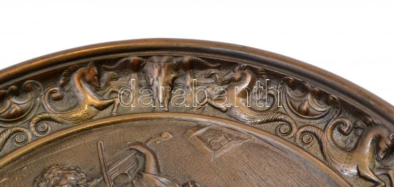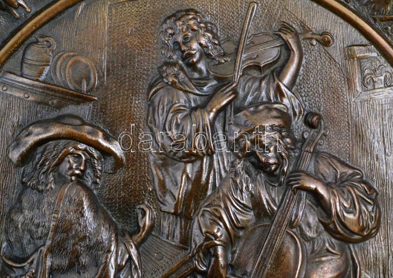 Leírás: XIX. sz. vége, jelzés nélkül: Mulató kurucok. Öntöttvas fali dísztál / Cast iron plate d:40