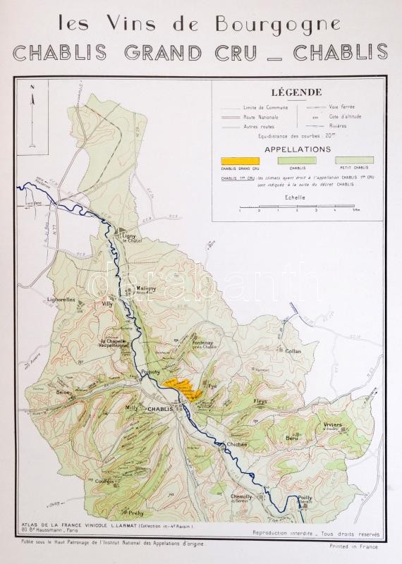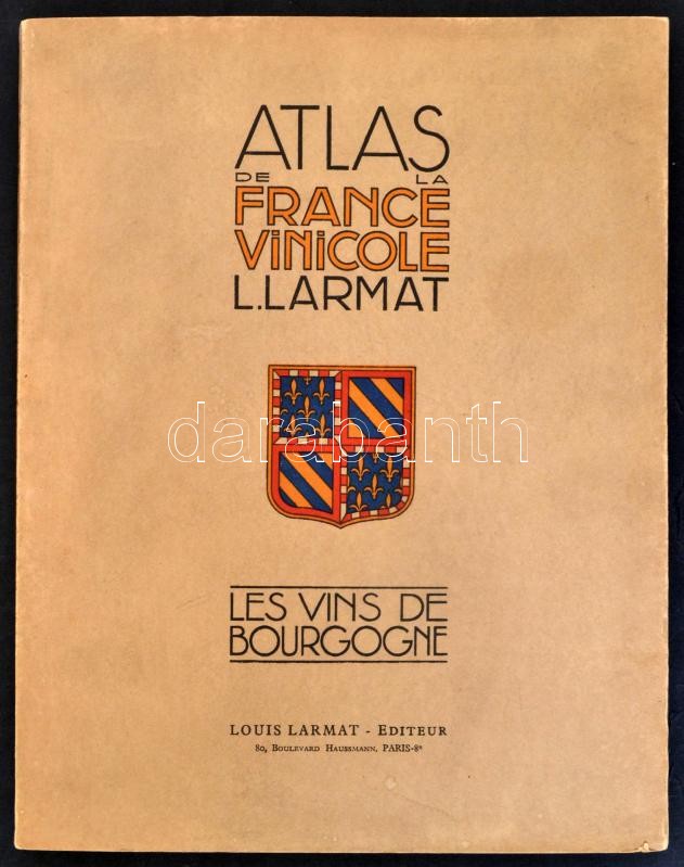 Atlas de la France Vinicole L. Larmat. Les vins de Bourgogne. Párizs, 1953, Larmat. Francia nyelven. Kiadói papírkötés, enyhén kopott borítóval. Több, részben kihajtható színes térképpel a Bourgogni borvidékről, feket-fehér képekkel és ábrákkal gazdagon illusztrált.