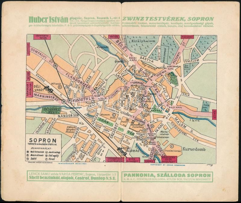 Leírás: Sopron városának kisméretű térképe, reklámokkal, 20×23 cm