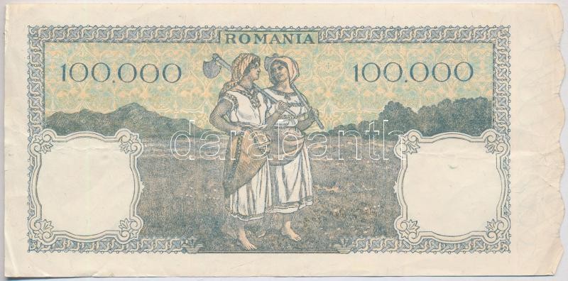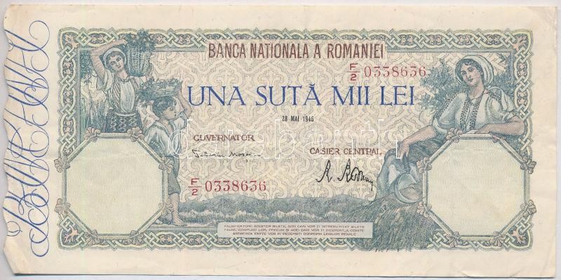 Romania 28.05.1946. 100.000 Lei C:... https://www.darabanth.com/hu/367-Gyorsarveres/367.0/Numizmatika/Kulfoldi-bankjegyek~2000013/Romania-19460528-100000L-TIII-Romania-28051946-100000-Lei-CF~II2130012