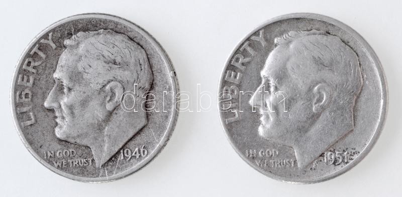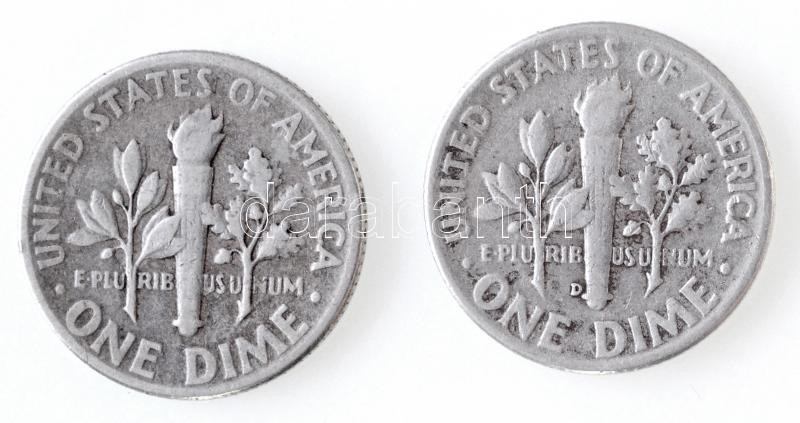 Amerikai Egyesült Államok 1946-1951D 1d Ag "Roosevelt" (2x) T:2,2- patina, kis ph.