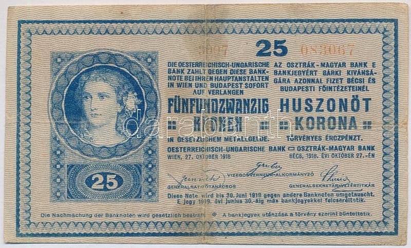 1918. 25K "3008" 3,5mm, sima hátlappal T:III fo. Adamo K22/1 https://www.darabanth.com/hu/367-Gyorsarveres/367.0/Numizmatika/Magyar-bankjegyek~2000007/1918-25K-3008-3-5mm-sima-hatlappal-TIII-fo-Adamo-K221~II2130258