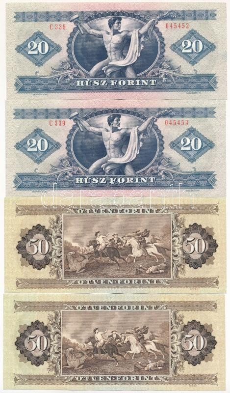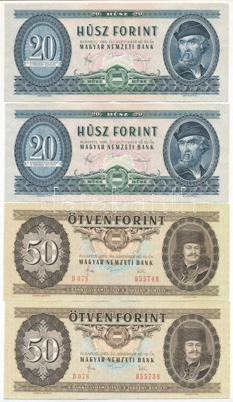 1980. 20Ft (2x) sorszámkövetők + 1983. 50Ft (2x) egyugrásos sorszámköv... https://www.darabanth.com/hu/367-Gyorsarveres/367.0/Numizmatika/Magyar-bankjegyek~2000007/1980-20Ft-2x-sorszamkovetok-plus-1983-50Ft-2x-egyugrasos-sorszamkoveto-TI-II~II2124750