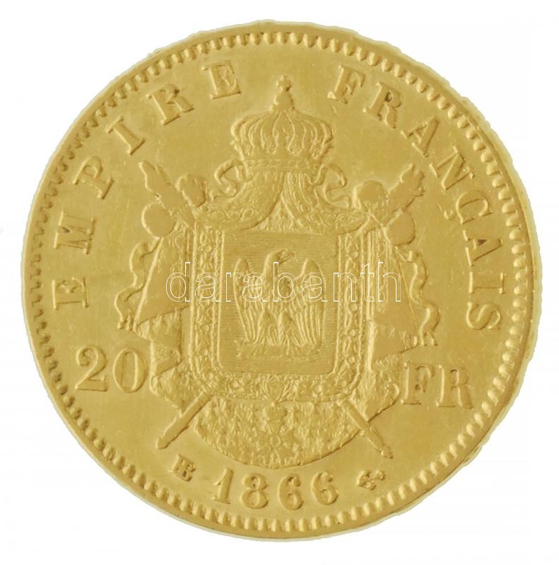Franciaország / Második császárság 1866BB 20Fr Au "III. Napóleon" (6,42g/0.900) T:2 France / Second Empire 1866BB 20 Francs Au "Napoleon III" (6,42g/0.900) C:XF Krause KM#801.2