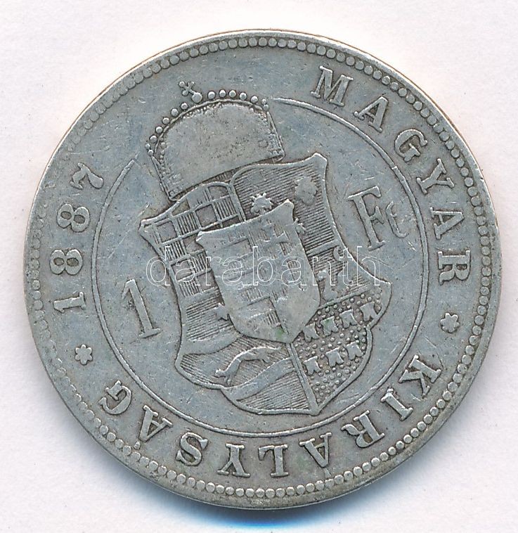 Leírás: 1887KB 1Ft Ag "Ferenc József / Barokk címer" T:2-