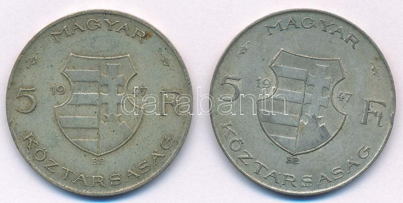 Leírás: 1947. 5Ft Ag "Kossuth" (2x) T:2- patina Adamo F8.1