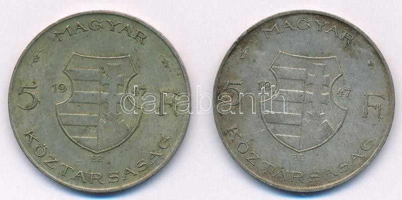 Leírás: 1947. 5Ft Ag "Kossuth" (2x) T:2- patina, ph.Adamo F8.1