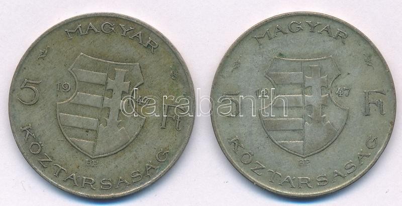 Leírás: 1947. 5Ft Ag "Kossuth" (2x) T:3 patina, ph.Adamo F8.1