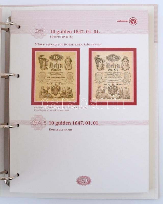 Adamovszky István: Magyarország Bankjegyei 4. - A guldenrendszer 1759-1891. Színes bankjegy katalógus, nagyalakú négygyűrűs mappában. Újszerű állapotban