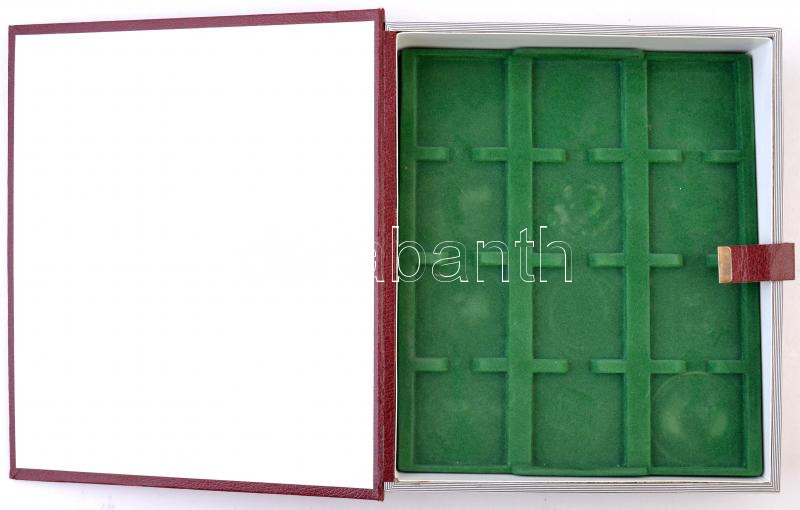 Leírás: Használt könyv formájú éremtálca tartó, két tálcával, a gerincen "História - XX. század" felirattal