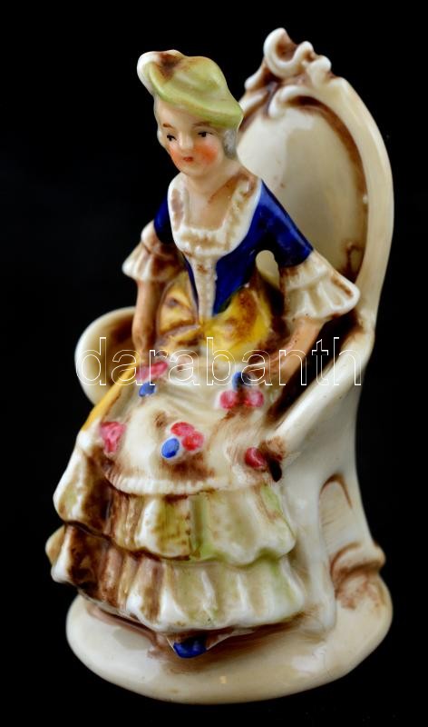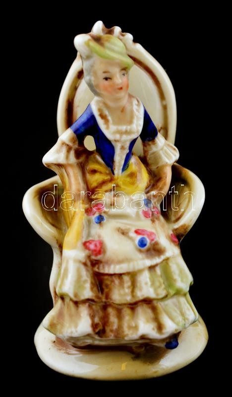 Leírás: Alt Wien jelzésű figura. Dáma, trónon. Kézzel festett, jelzett, hibátlan. 7 cm