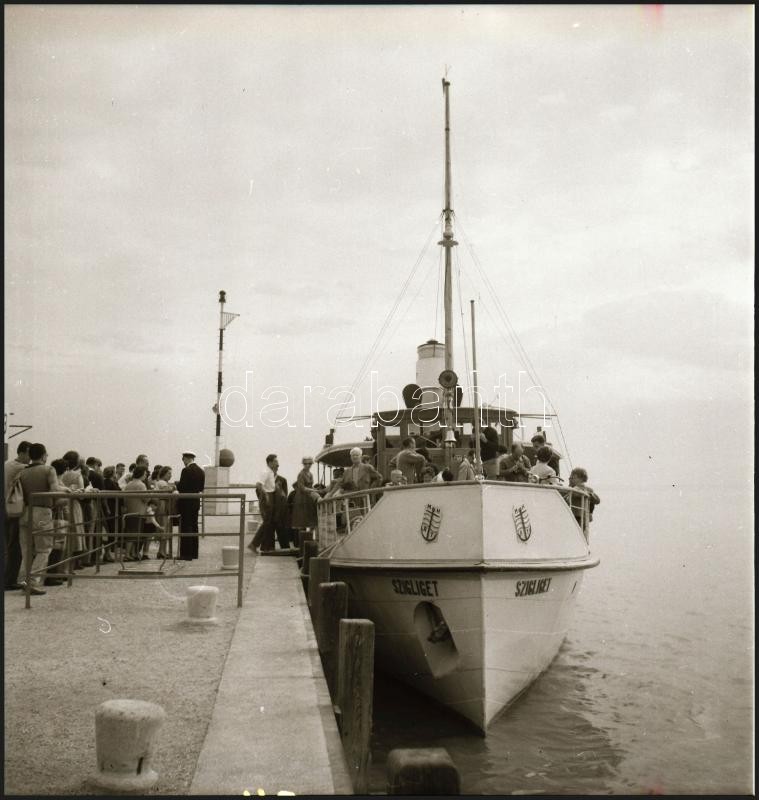 1960 Balatonfüred és a Szigliget hajó, Tiszavölgyi József (1909-?) budapesti fotóriporter hagyatékából 6 db vintage NEGATÍV, rövid felirat a filmen, 6x6 cm
