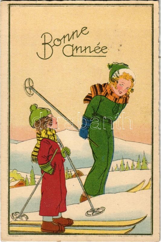 Bonne Année / New Year greeting art postcard, winter sport, skiing gir... https://www.darabanth.com/hu/368-Gyorsarveres/368.0/Kepeslapok/Sport~500095/Bonne-Annee-New-Year-greeting-art-postcard-winter-sport-skiing-girls-EKO-9025~II2137450