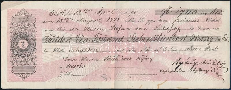 Leírás: 1871 2Ft címletű váltó