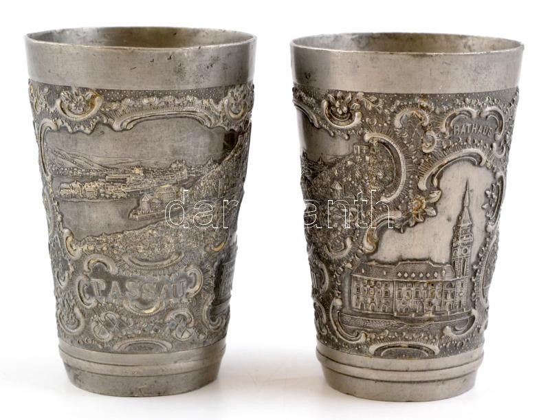 Leírás: Régi "Passau"feliratos ón poharak, az oldalán Passau képével, jelzett (F.&M. N. - Felsenstein&Mainzer. Nürnberg), kopásnyomokkal, m: 9 cm
