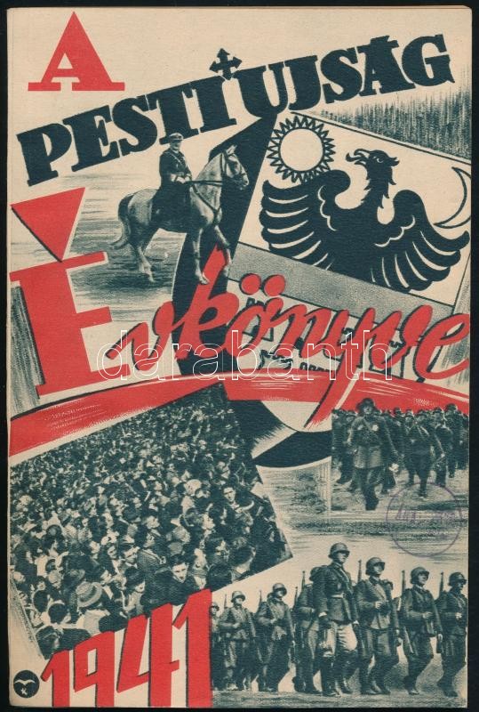 1941 A nyilaskeresztes Pesti Újság évkönyve. Szép állapotban. 128p. https://www.darabanth.com/hu/368-Gyorsarveres/368.0/Mutargy-papirregiseg-egyeb/Nyomtatvanyok~1000032/1941-A-nyilaskeresztes-Pesti-Ujsag-evkonyve-Szep-allapotban-128p~II2133105