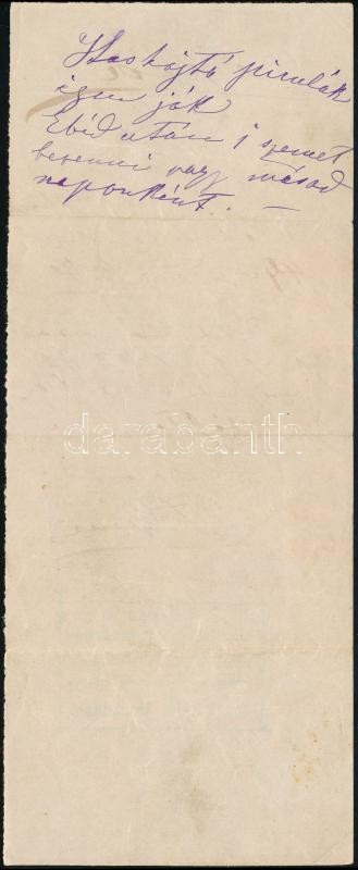 Leírás: 1891 Kézzel írt, a szabadkai Joó Károly gyógyszerész által lepecsételt hashajtó pirula receptje