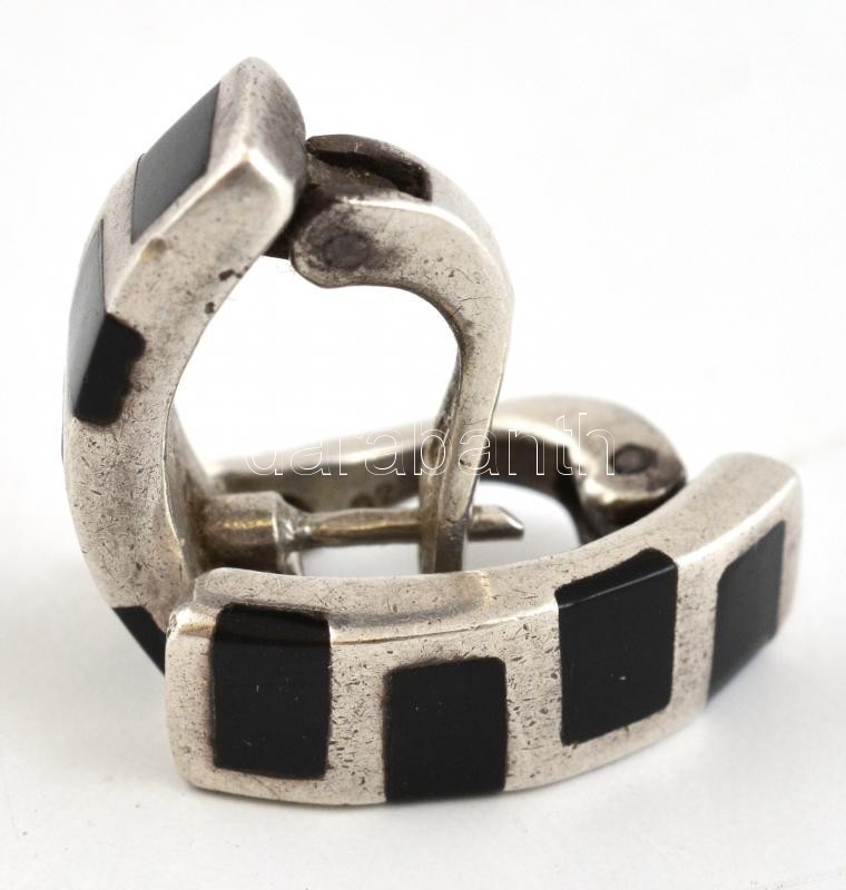 Leírás: Ezüst (Ag) zománc berakásos fülbevalópár, jelzett, 2x0,6 cm, bruttó: 8,8 gr