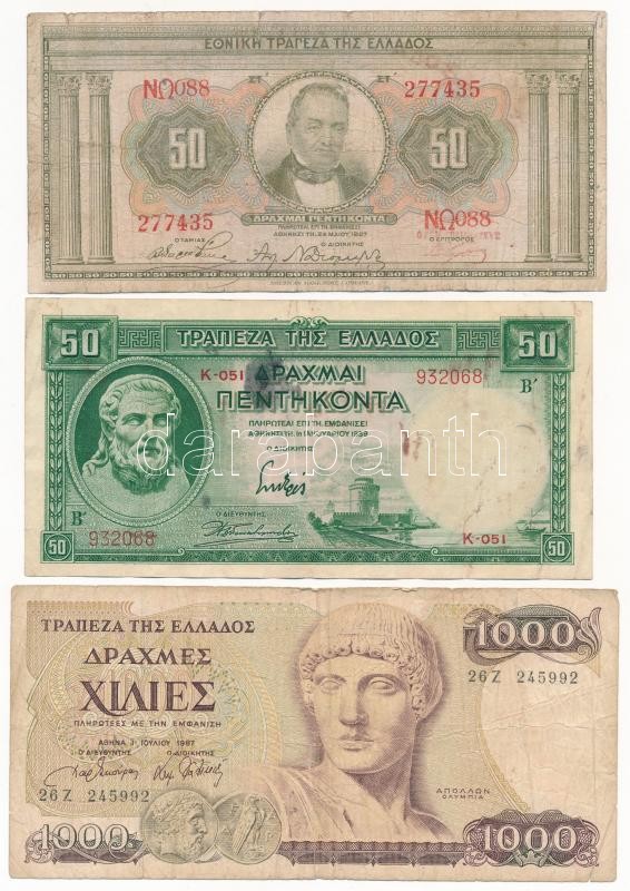 Görögország 1939. 50D + 1978. 100D (3x) + 1927. 50D + 1987. 1000D T:II... https://www.darabanth.com/hu/368-Gyorsarveres/368.0/Numizmatika/Kulfoldi-bankjegyek~1500013/Gorogorszag-1939-50D-plus-1978-100D-3x-plus-1927-50D-plus-1987-1000D-TIII-III-Greece-1939-50-Drac~II2134094