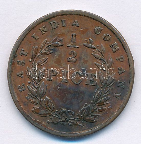 Leírás: Brit-India / Kelet-Indiai Társaság 1853. 1/2p Cu T:1- patina