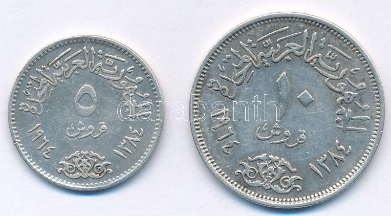 Egyiptom 1964. 5p Ag "Nílus mederszabályozása" + 10p Ag "Nílus mederszabályozása" T:2 Egypt 1964. 5 Piastres Ag "Diversion of the Nile" + 10 Piastres Ag "Diversion of the Nile" C:XF Krause KM#404, KM#405
