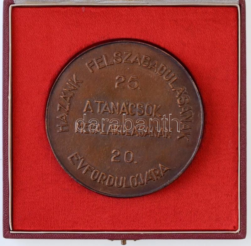 Leírás: 1970. "Budapest Főváros VII. Ker. Tanácsa / Hazánk Felszabadulásának 25. a Tanácsok Megalakulásának 20. évfordulójára" Br emlékérem. Szign.: P.Gy. (88mm) dísztokban T:2